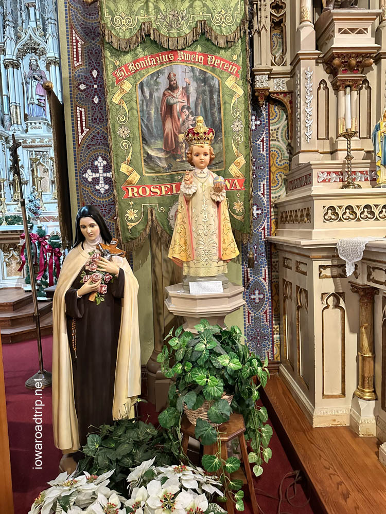 The present Holy Angels Catholic Church was constructed in 1904 in the Gothic Revival style. Building such an ambitious structure in a remote rural area was no small task. Roselle was never served by a railroad, meaning construction materials had to be hauled long distances by horse-drawn wagons.