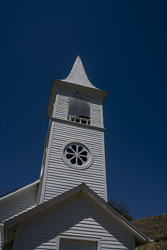 Originally a simple white gabled frame building, the structure later received its distinctive foyer and steeple — designed and added in 1904 by builder Andrew J. Simonsen — giving the church its beloved rural silhouette.