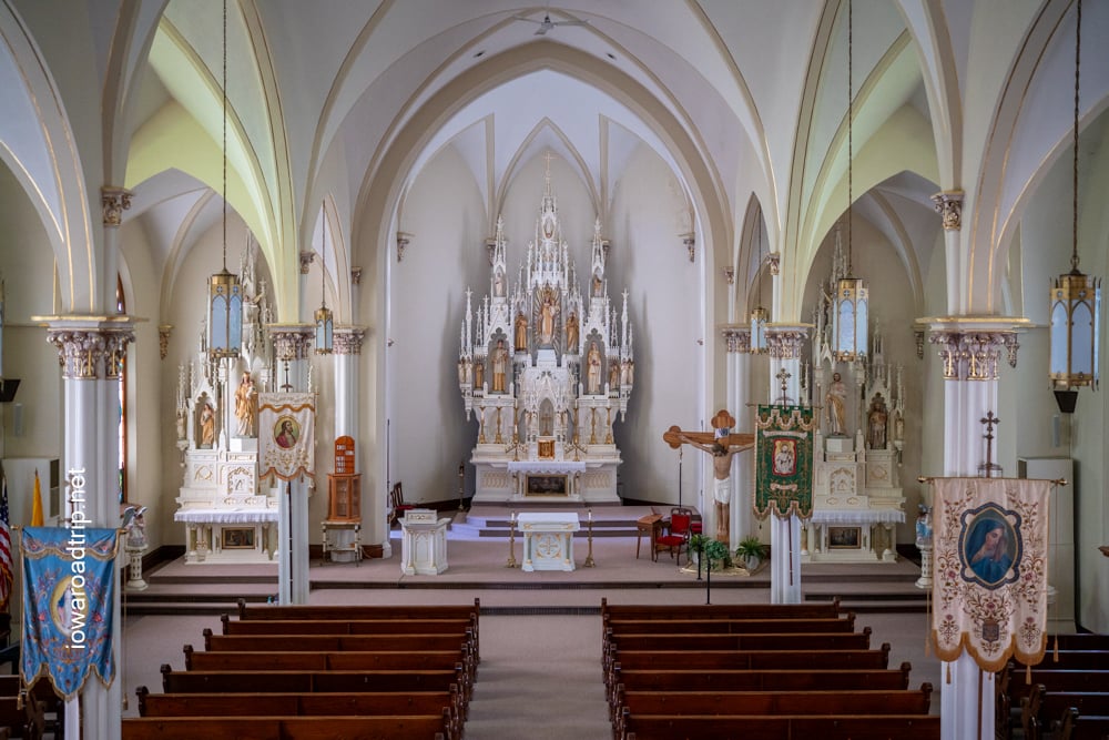The first church building was completed in 1869 — a modest 24-by-40-foot frame structure built on a stone foundation. At the time, it served as the only Catholic church between Boone and Council Bluffs, a testament to the dedication of the early parishioners. Father Henry J. Heimbucher was the parish’s first pastor.