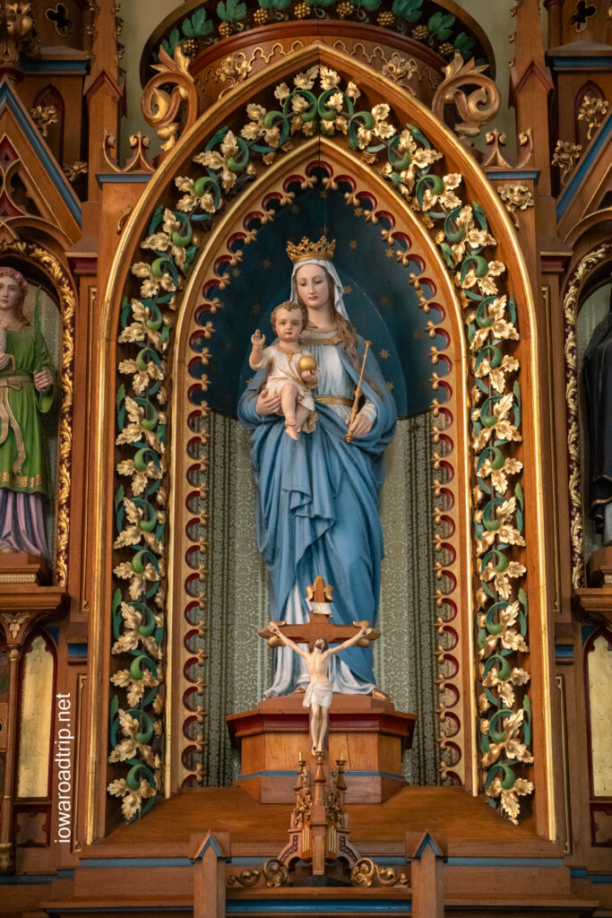 New Vienna is a tiny Iowa town with a big architectural treasure. From afar, the church’s tall spire and sturdy limestone walls rise above fields and rooftops alike — a beacon in every season. The church serves not only local parishioners, but also travelers who make the turn off Highway 136 to see one of Iowa’s most impressive rural churches.